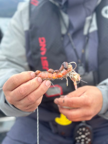 I left my house at 5:00am and headed East up the Columbia River Gorge. We launched out of the Wind River early in the morning on a cold, windy & rainy day - Ken had a heater going on the boat so we stayed warm, but the wind and rain still cut through the air. We navigated through a very shallow area, almost getting stuck several times, before finding the channel and reaching the main river. Once there, we settled into a spot and cast our lines. Ken had us using sand shrimp as bait. After about 45 minutes with no bites, we moved a few hundred yards upriver and set up again.
